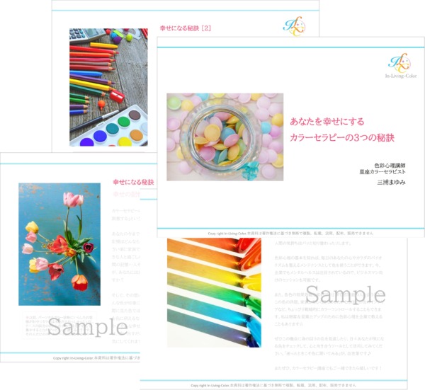 【あなたを幸せにするカラーセラピー3つの秘訣PDF】をプレゼントします♪